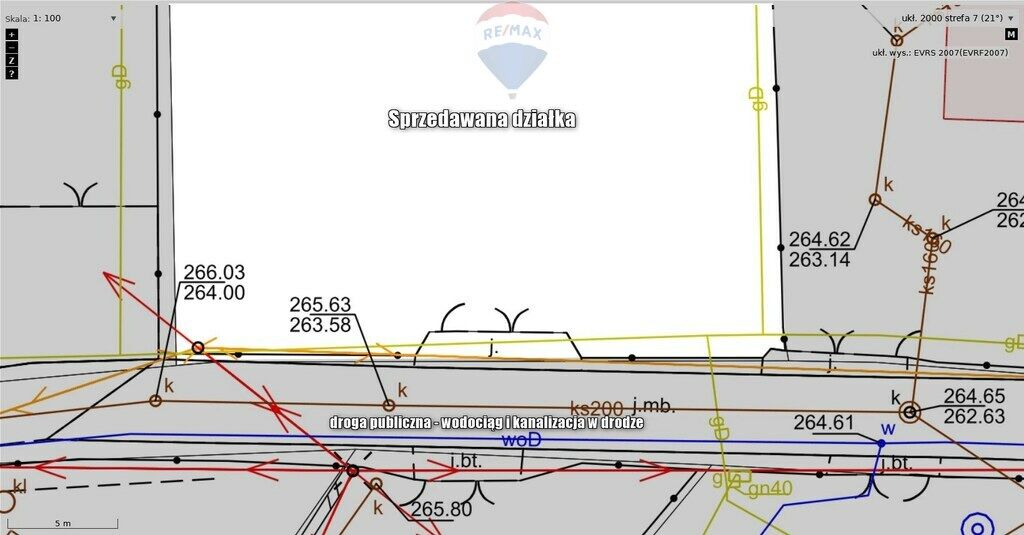 kanalizacja - w drodze publicznej wzdłuż granicy działki