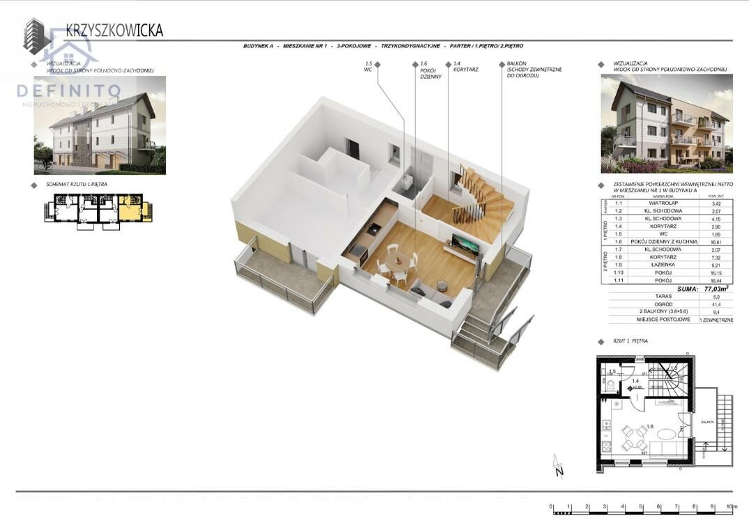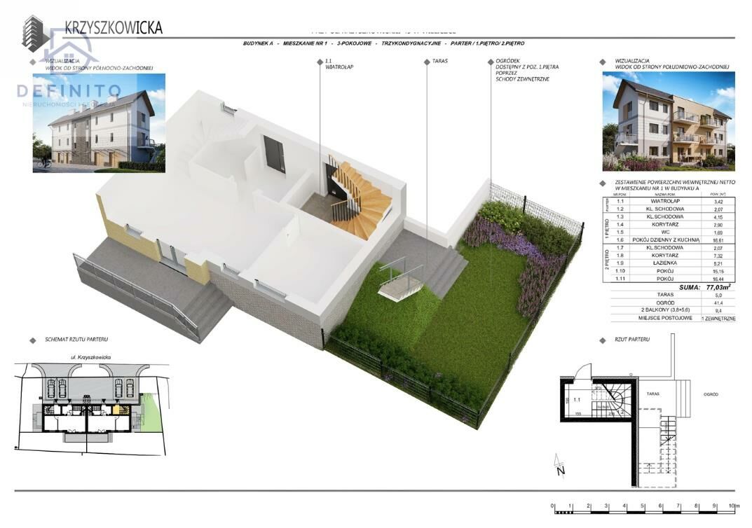 Na sprzedaż nowoczesne, trzypoziomowe mieszkanie o powierzchni 77,03 m, zlokalizowane w stylowym budynku położonym na ogrodzonej działce przy ul. Krzyszkowickiej w Wieliczce.Funkcjonalny układ, wyraźny podział na strefę dzienną i prywatną oraz dodatkowe przestrzenie zewnętrzne czynią tę nieruchomość idealną dla rodziny lub osób szukających komfortu w formie "mieszkania jak dom".