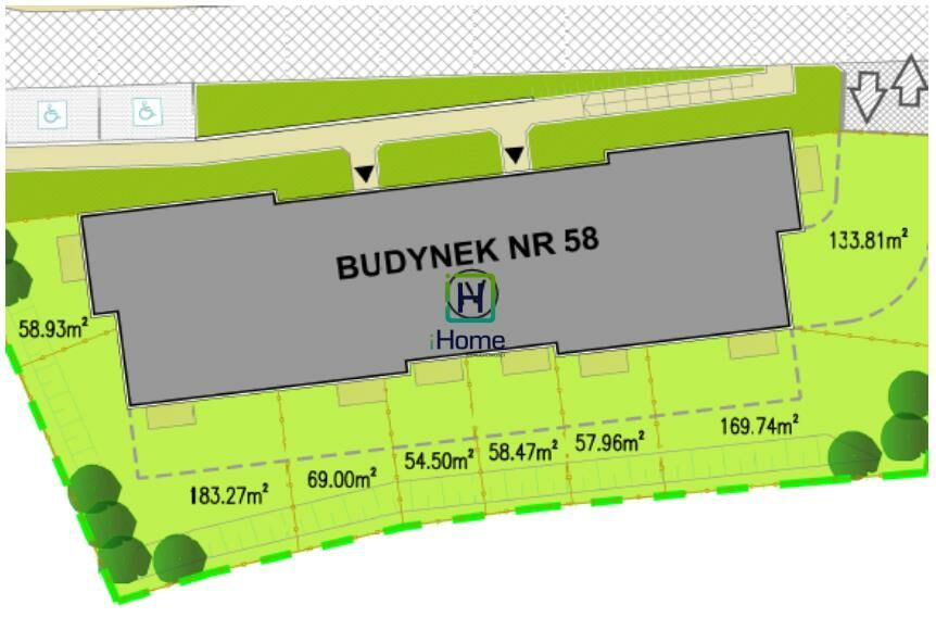 - 3 pokojowe mieszkanie o metrażu 53,17m zlokalizowane parterze z ogródkiem 183m2 w budynku 58.