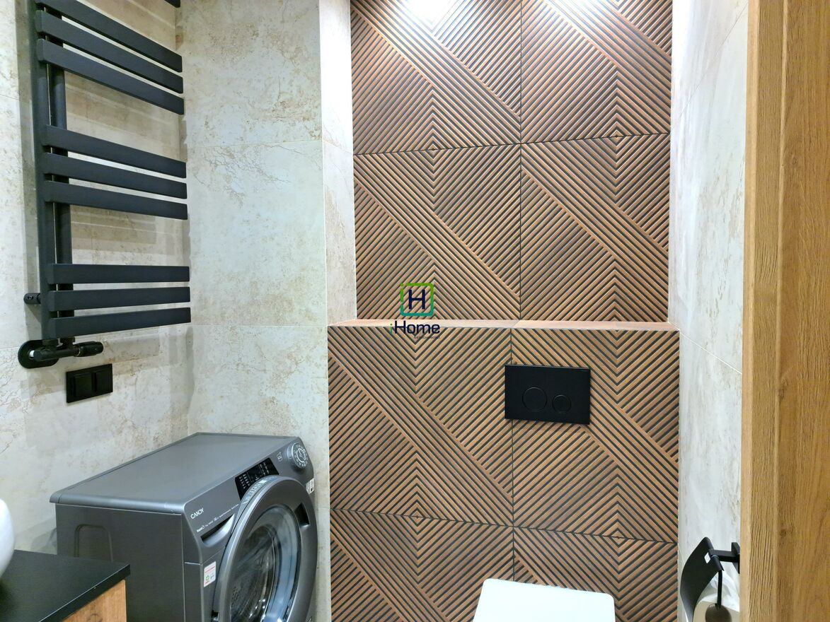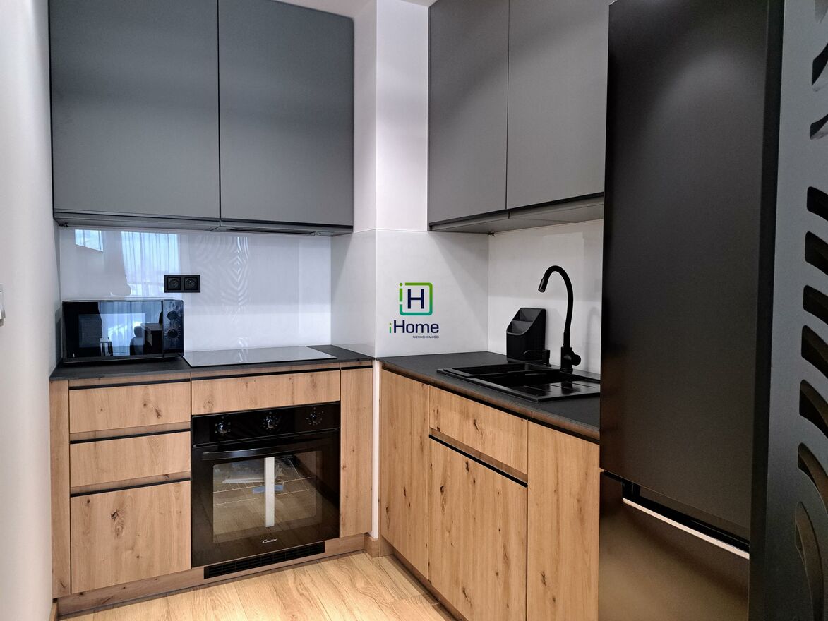zmywarka, płyta indukcyjna, piekarnik, lodówka, pralka, rozkładana sofa, łóżko 160200, szafa w zabudowie, biurko/toaletka, klimatyzacja.