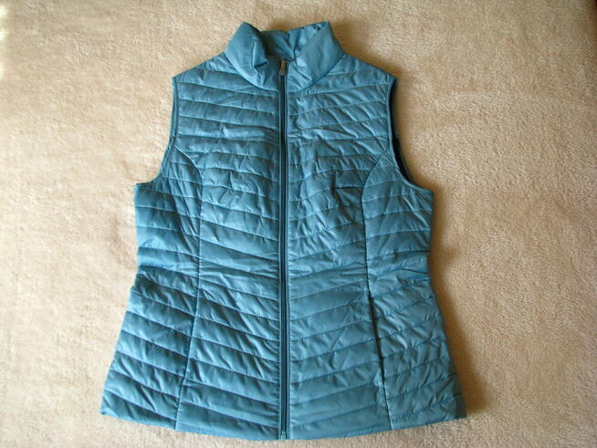 Witam, Sprzedam pikowany damski bezrękawnik w rozmiarze 38, w ładnym niebieskim kolorze o odcieniu turkusowym. ...