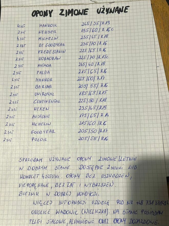Mam do sprzedania opony używane dobrym stanie każde rozmiary też nowe dobrej bardzo cenię felgi metalowe aluminiowe opony do traktorów kładów też prostowanie felg aluminiowych więcej informacji pod tel Wadowic Bielsko Biała Kraków WieliczkaMateusza