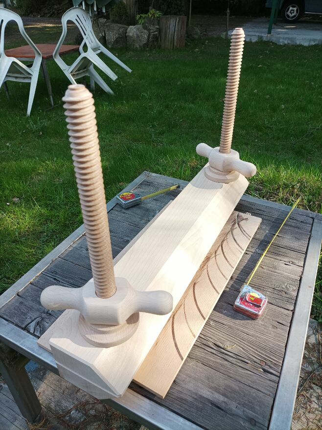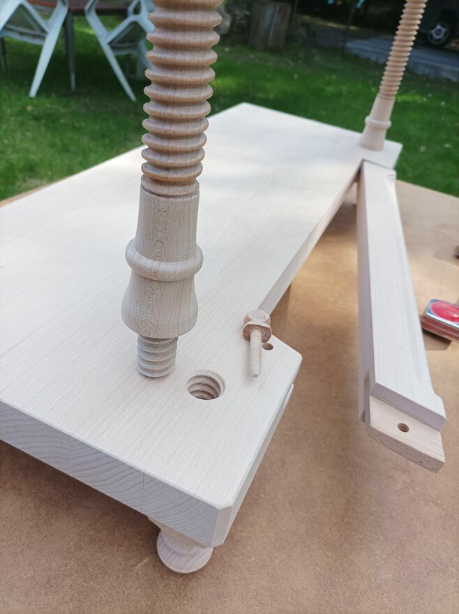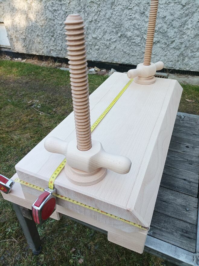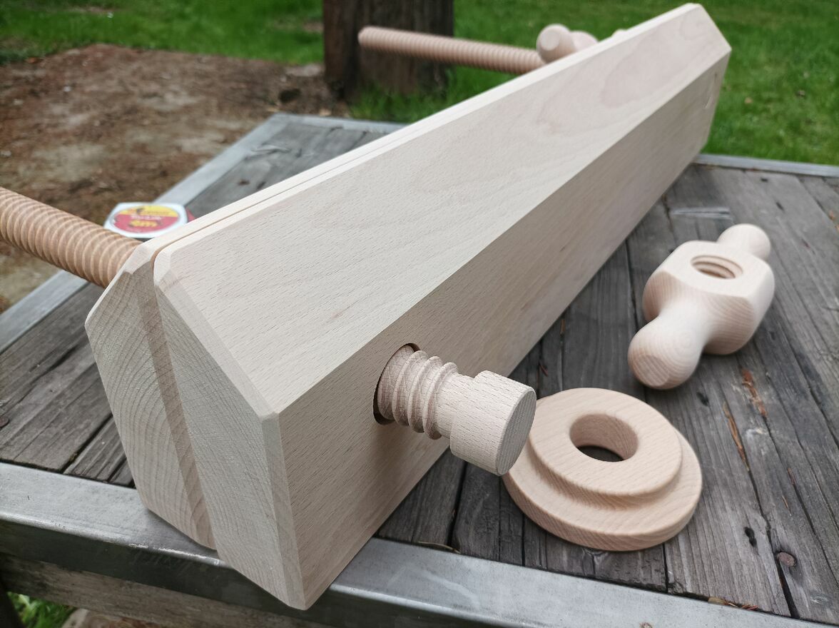 Robimy między innymi prasy introligatorskie,spożywcze, Śruby drewniane (materiał- buk) i nakrętki średnica mierzona - po gwincie - 45,30,25,19mm -do stołów stolarskich ,pras,zabawek itd.-fi45mm x 480mm (370mm gwintu - skok gwintu-7mm - gwint Edisona)